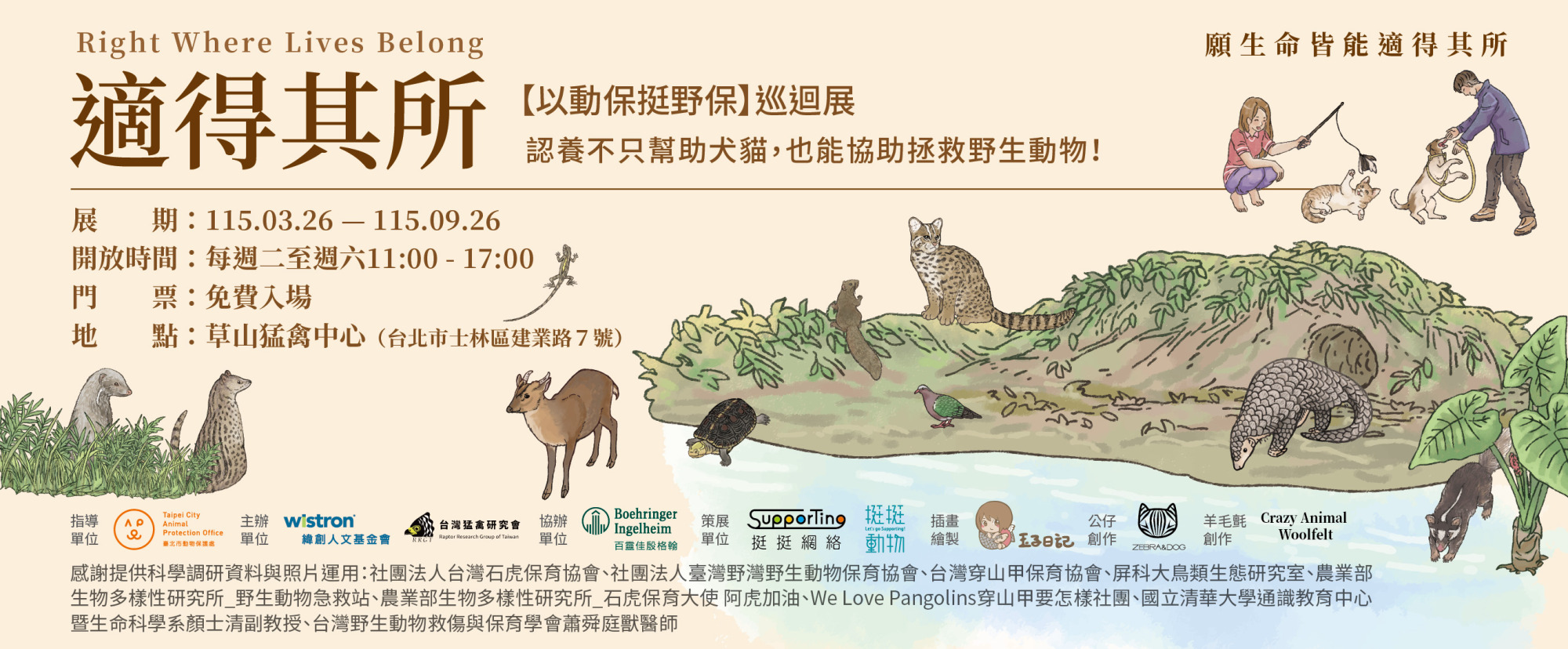 認養不只能夠幫助犬貓,還能協助拯救野生動物!如果你過去從來沒有這麼想過,如果你對這一句話感到疑惑,誠摯邀請您來看展。