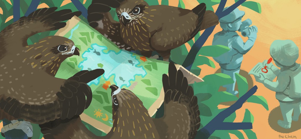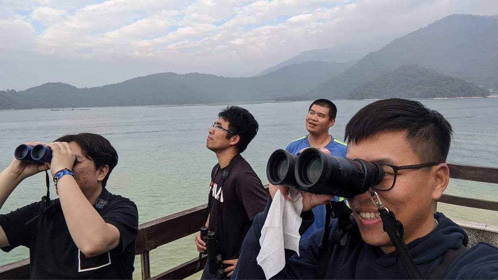 話雖如此,我們倒是沒有喪氣過。因為日月潭樣區可以說是全台灣最愉悅的樣區,且調查的次年我們成立了「黑林鴿鳥會」正式加入固定調查班底,我們每年2次在土亭仔燈塔聚會,帶著各式零食飲料,呼朋引伴,像是開同樂會一般在亭子裡喧鬧。天氣好,看波光粼粼,天氣不好,看煙雨迷濛。一邊聊天,一邊ebird,一邊跟開來開去的觀光船打招呼。日月潭不似南北各大樣區,肩負著黑鳶總數是否能夠創新高的使命,而且我們心裡都很清楚,想看到黑鳶是相當困難的,只要1,只要1就是歷史性的一刻,所以每次都是帶著「今天就是那一天」的期待感出門,只不過這個期待感到現在仍然繼續期待就是了。