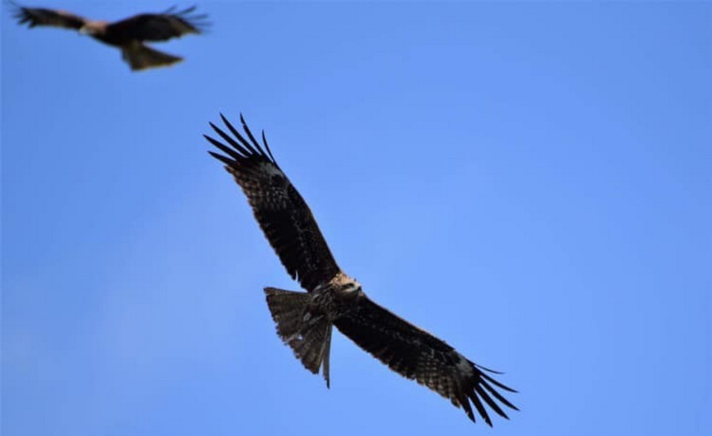 傍晚他沿著三峽山區茂密的森林上空飛行,經過白雞山、五寮尖山,迎著夕陽最後一次回到石門水庫休息。